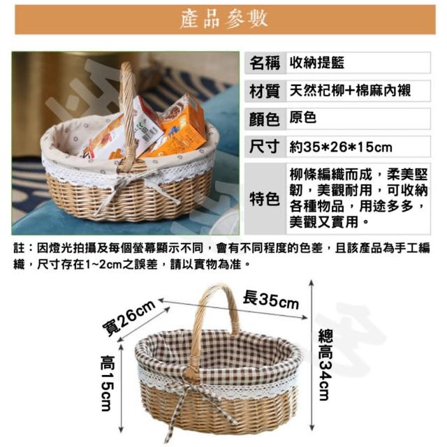 手工編製野餐麻布收納籃(柳藤編製 環保無味 野餐籃 竹籃 提籃 水果籃 藤編收納籃 藤編籃 喜糖籃 婚禮提籃 婚禮小物 手工編製野餐麻布收納籃)