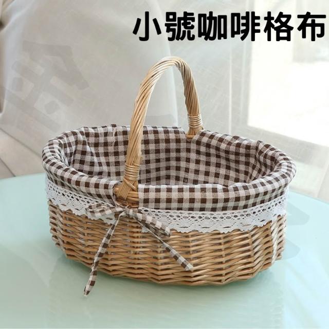 手工編製野餐麻布收納籃(柳藤編製 環保無味 野餐籃 竹籃 提籃 水果籃 藤編收納籃 藤編籃 喜糖籃 婚禮提籃 婚禮小物 手工編製野餐麻布收納籃)
