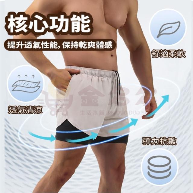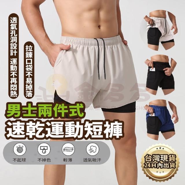 男士兩件式速乾(材質柔軟輕盈 伸展自如不易緊蹦 輕鬆運動更暢快 運動短褲男 男運動短褲 運動褲短褲 慢跑短褲 健身短褲 跑步短褲 速乾短褲 男士兩件式速乾短褲)