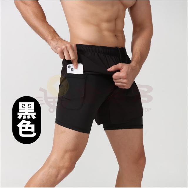 男士兩件式速乾(材質柔軟輕盈 伸展自如不易緊蹦 輕鬆運動更暢快 運動短褲男 男運動短褲 運動褲短褲 慢跑短褲 健身短褲 跑步短褲 速乾短褲 男士兩件式速乾短褲)