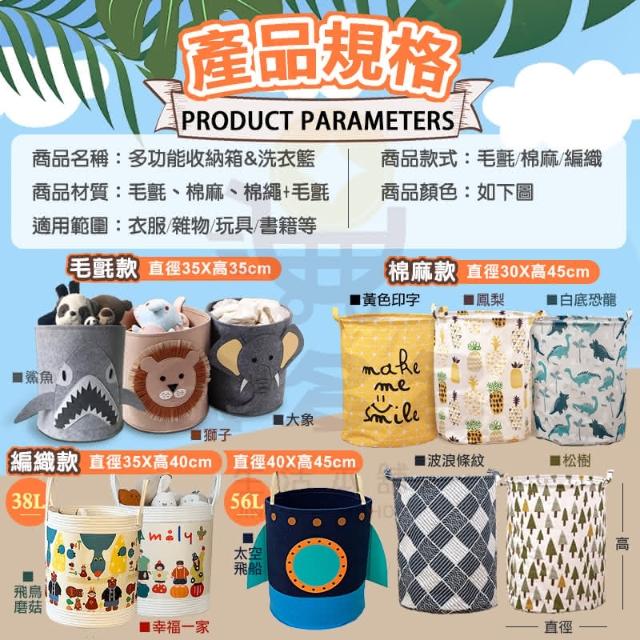 多功能收納箱&洗衣籃毛氈款(超大容量、一筐多用。洗衣籃 收納籃 髒衣籃 玩具收納箱 折疊洗衣籃 收納桶 玩具收納籃 棉麻收納箱 棉麻收納籃 多功能收納箱&洗衣籃)