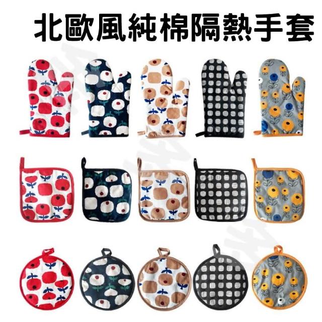 北歐風純棉隔熱手套(隔熱手套 防燙手套 矽膠手套 烘培手套 矽膠隔熱手套 烤箱手套 微波爐手套)
