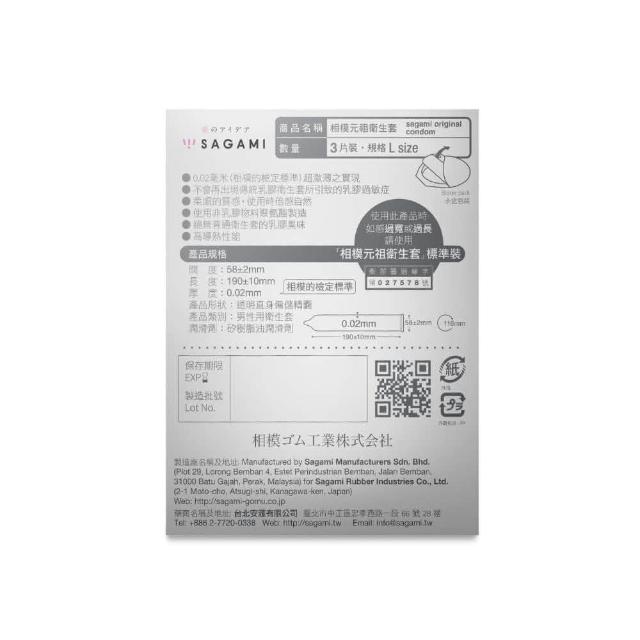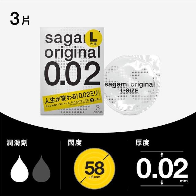 sagami 相模002 超激薄型加大58+/-2mm 3入/盒 保險套