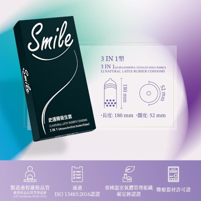 快速出貨SMILE史邁爾 超薄 / 顆粒 /3合1 12入/盒 保險套