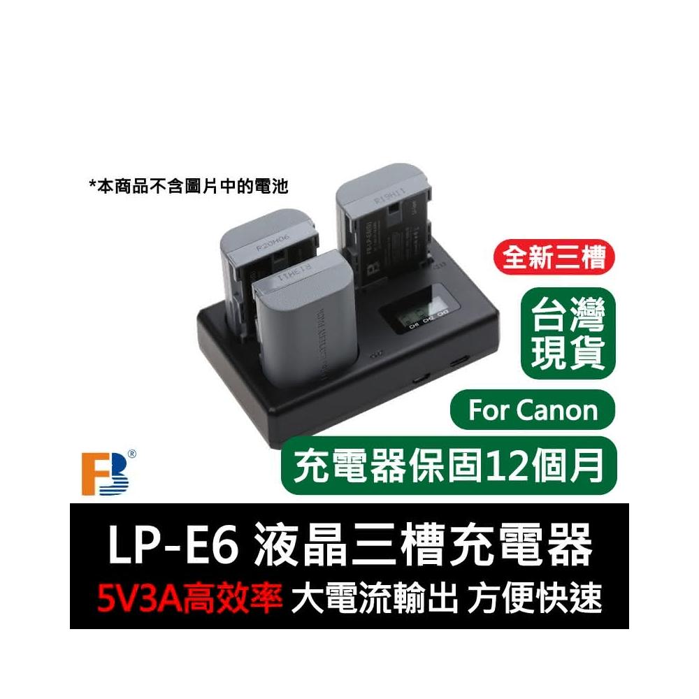 台灣現貨 FB沣標 LP-E6電池三槽液晶充電器 For Canon LP-E6電池 最新三槽設計