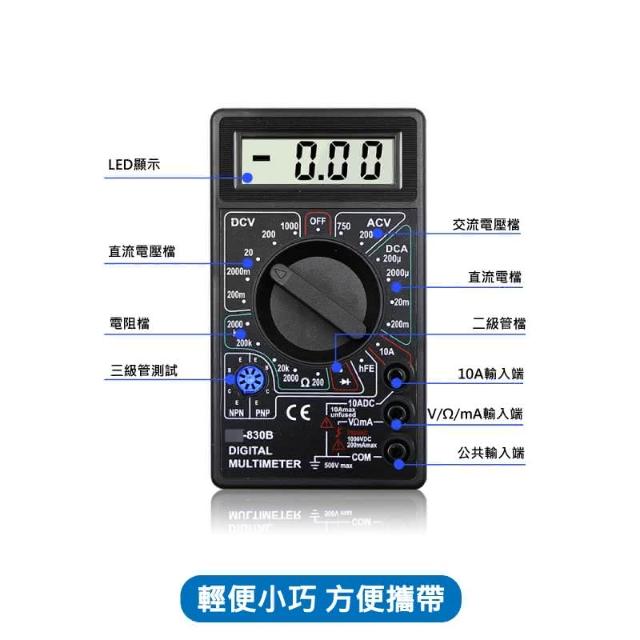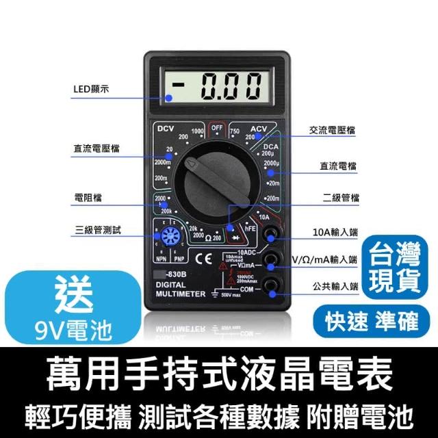 台灣現貨 熱銷補貨到! 萬用手持式液晶電表 輕巧便攜 測試各種數據 附贈電池