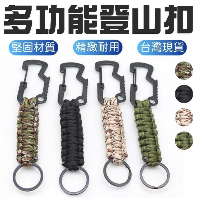 台灣現貨 戶外求生登山鑰匙鏈 傘繩編織 多功能鋅合金登山扣 不銹鋼鑰匙鏈圈 攀岩繩 求生繩 童軍繩