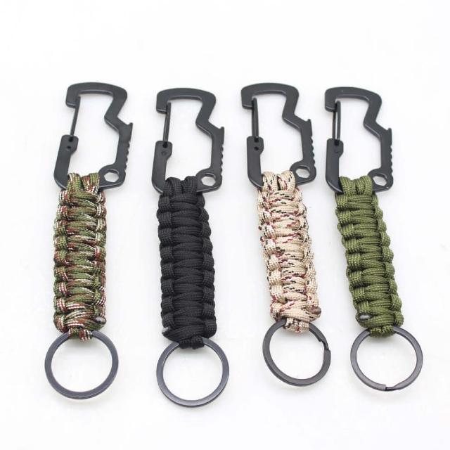 台灣現貨 戶外求生登山鑰匙鏈 傘繩編織 多功能鋅合金登山扣 不銹鋼鑰匙鏈圈 攀岩繩 求生繩 童軍繩