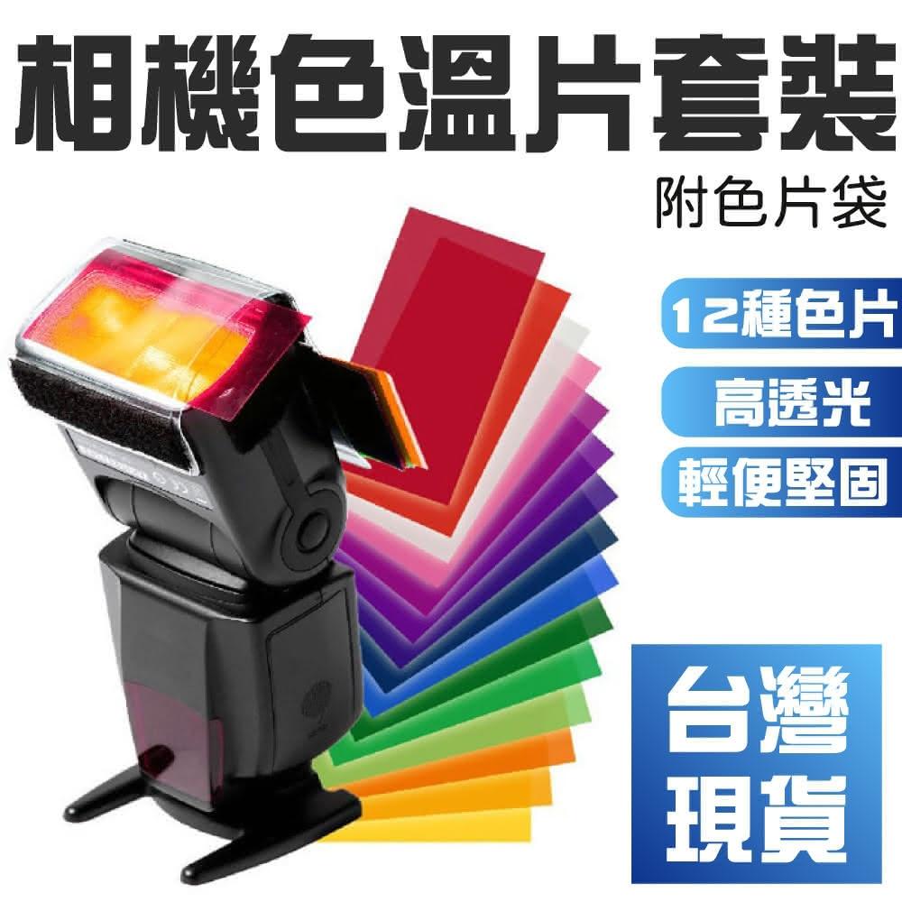台灣現貨 相機機頂閃光燈色溫片套裝燈光方形濾色紙補光燈12 色片