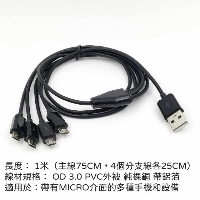 台灣現貨 1米長 USB一拖四 MICRO USB充電線 同時充4部安卓機 四合一