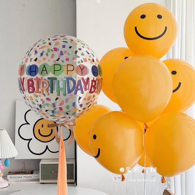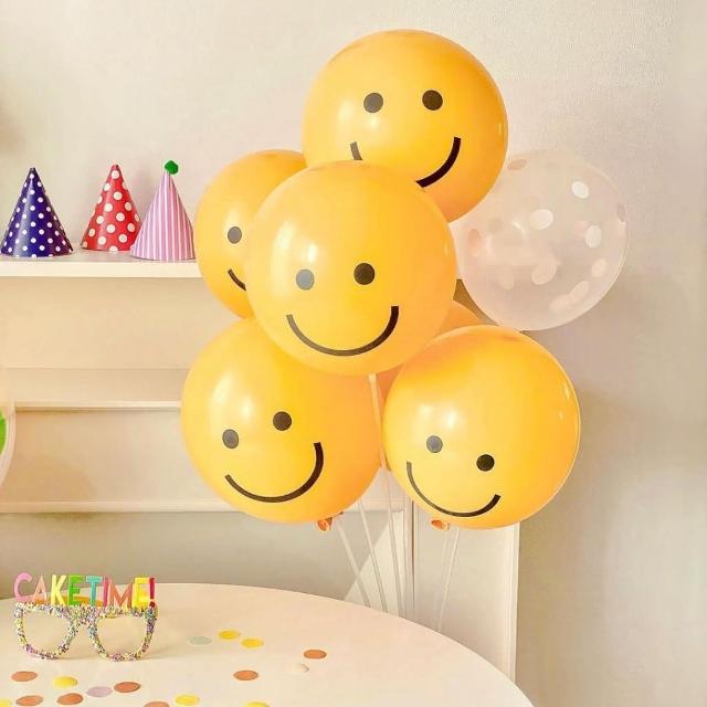 12H快速出貨 (氣球快易送) 台灣現貨 10入 12吋 INS韓風 笑臉氣球氣球佈置 微笑氣球 生日佈置 週歲佈置 氣球 抓周 收涎 生日氣球