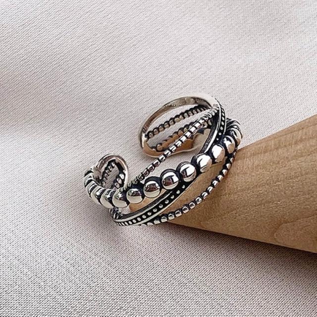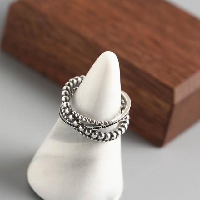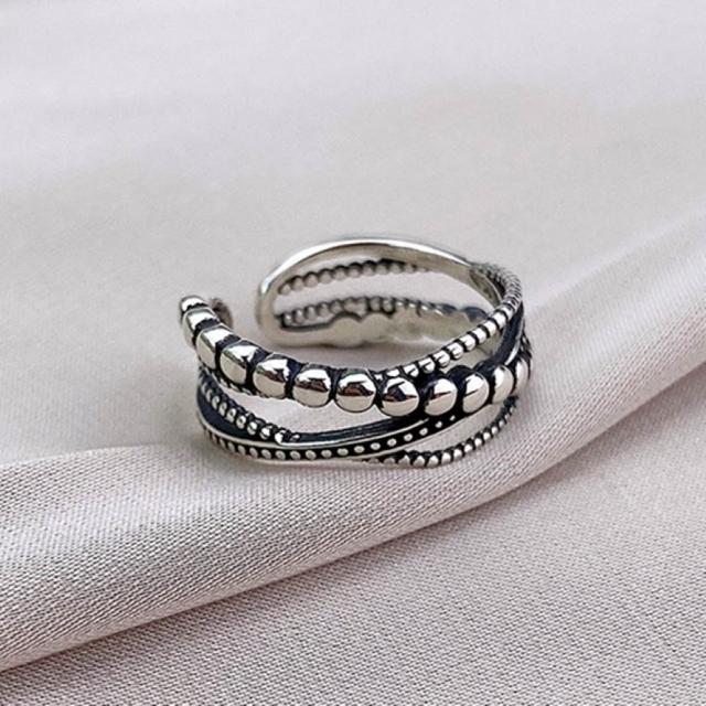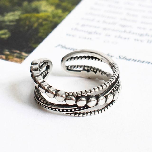 Topbee泰銀復古麻花交叉纏繞戒指 簡約創意仿舊開口戒指 食指戒 TJ033