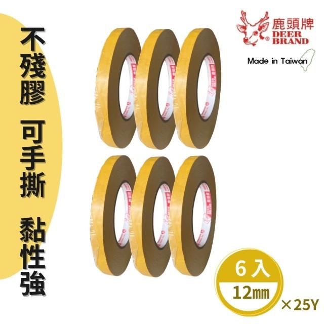 DEER BRAND 鹿頭牌雙面布膠帶12mm 25Y 6入 雙面膠 海報用高黏不易殘膠(布膠帶 雙面膠帶 鹿頭牌雙面膠)
