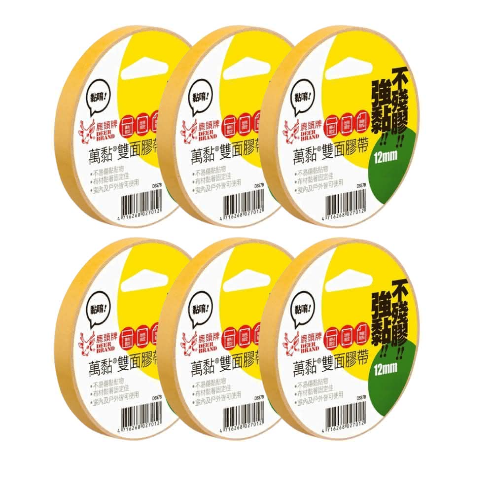 DEER BRAND 鹿頭牌雙面布膠帶12mm 25Y 6入 雙面膠 海報用高黏不易殘膠(布膠帶 雙面膠帶 鹿頭牌雙面膠)