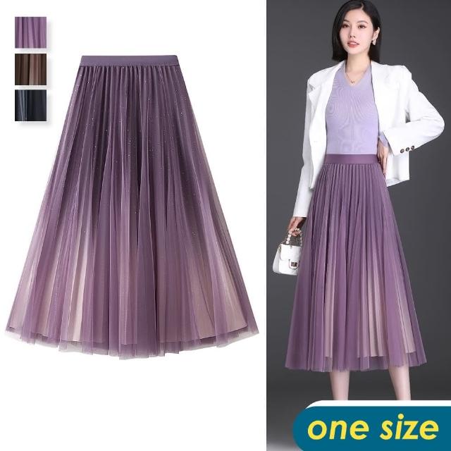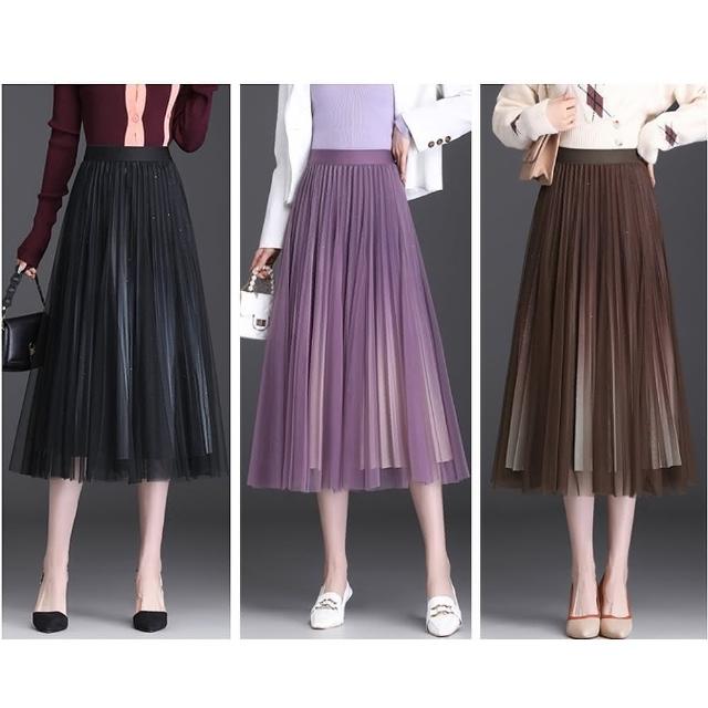 CHACO/現+預購/女秋冬閃耀星空漸變色百褶裙網紗半身裙#1810(星空 百褶 網紗 半身裙 長裙)
