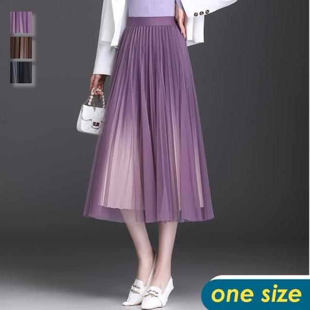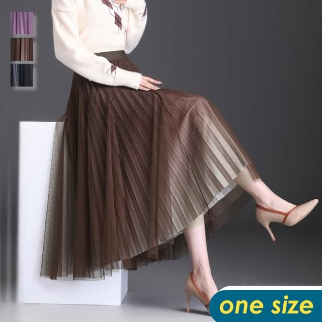 CHACO/現+預購/女秋冬閃耀星空漸變色百褶裙網紗半身裙#1810(星空 百褶 網紗 半身裙 長裙)