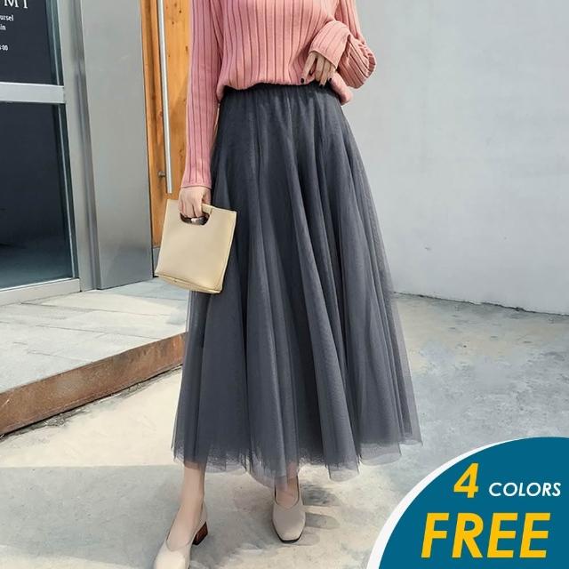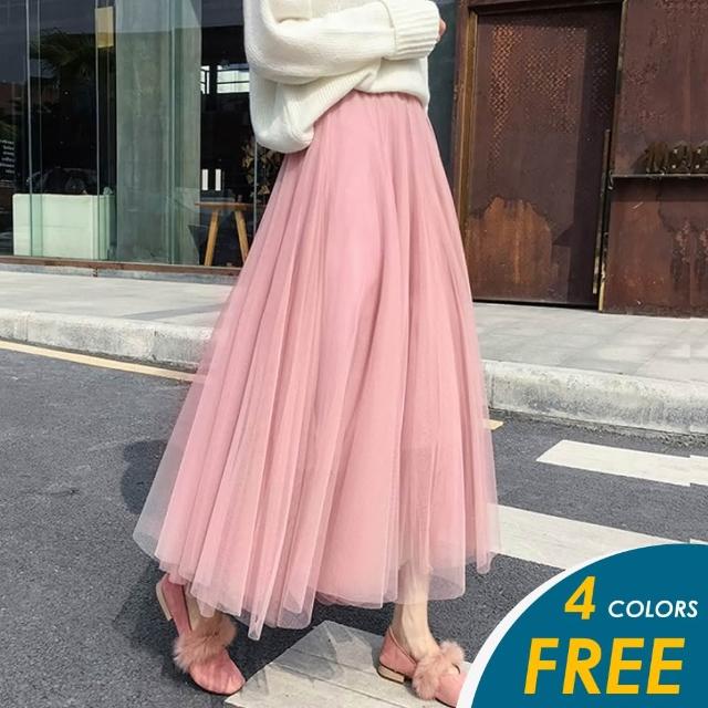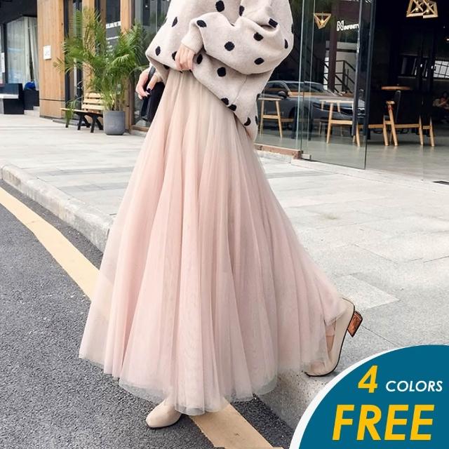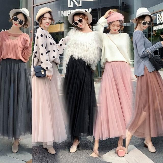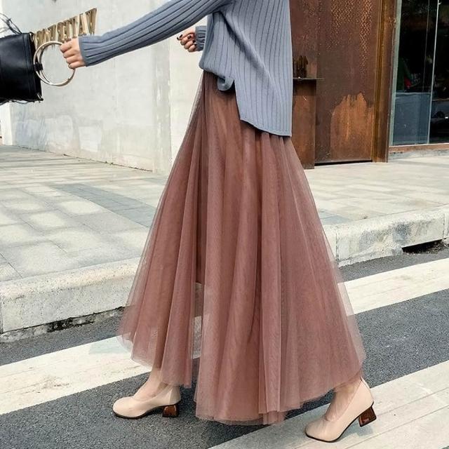 CHACO/現+預購/韓系百搭超火唯美中長版質感網紗裙#1938(現貨 網紗 百褶裙 半身裙 韓國)