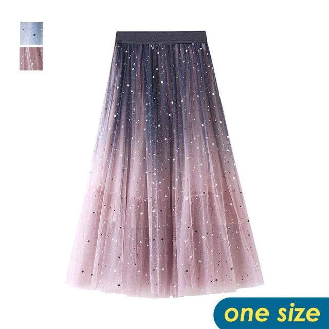 CHACO/現+預購/女 漸變色亮片星星仙女網紗裙半身長裙#8170(網紗 半身裙 長裙 亮片 女 春夏秋)