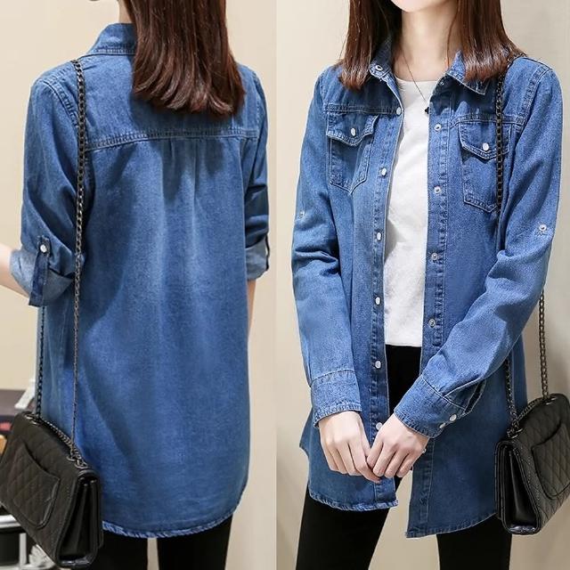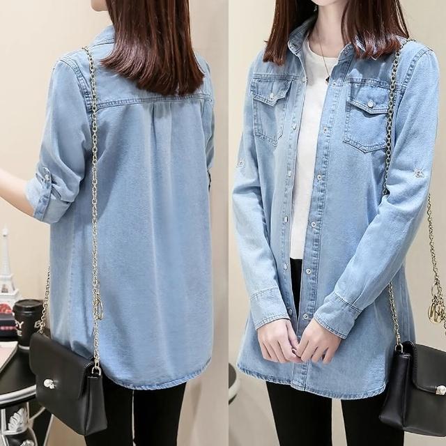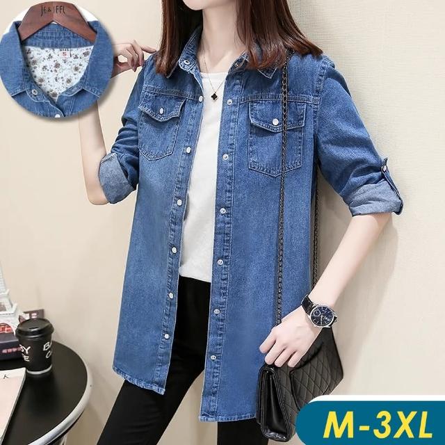 CHACO/現+預購/女春秋亮眼碎花學院風長袖牛仔襯衫外套#9771 深藍(牛仔 單寧 襯衫 外套 學院風 女)