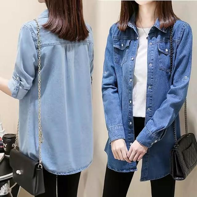 CHACO/現+預購/女春秋亮眼碎花學院風長袖牛仔襯衫外套#9771 深藍(牛仔 單寧 襯衫 外套 學院風 女)