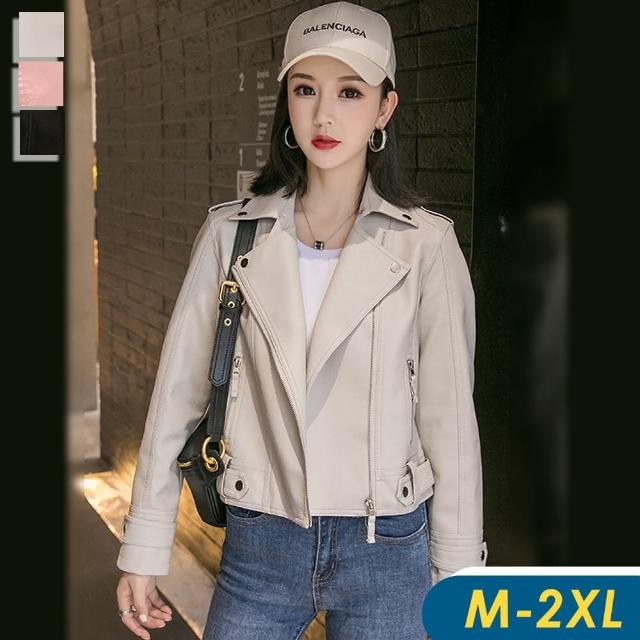 CHACO/預購/女春秋經典率性翻領短版皮衣夾克外套#py04(PU 皮衣 夾克 女外套 機車 米白 春秋)