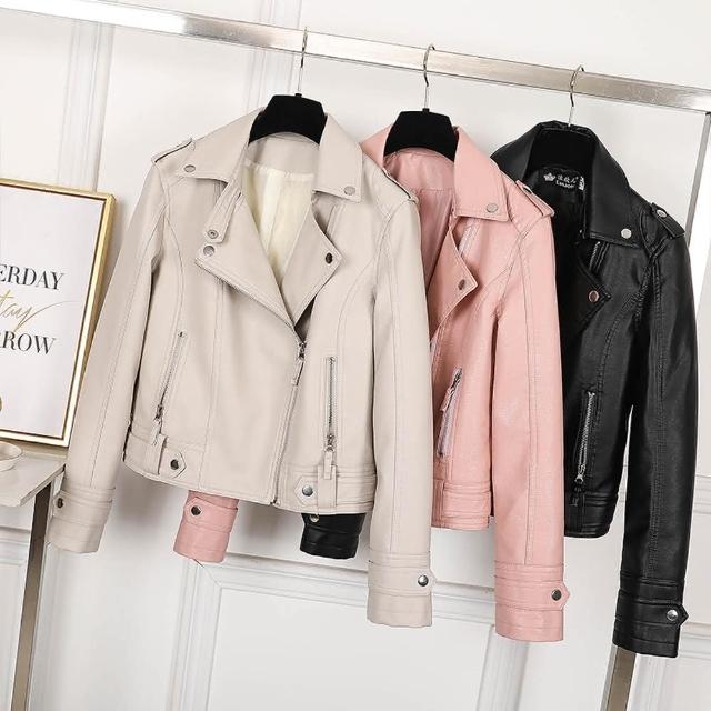 CHACO/預購/女春秋經典率性翻領短版皮衣夾克外套#py04(PU 皮衣 夾克 女外套 機車 米白 春秋)