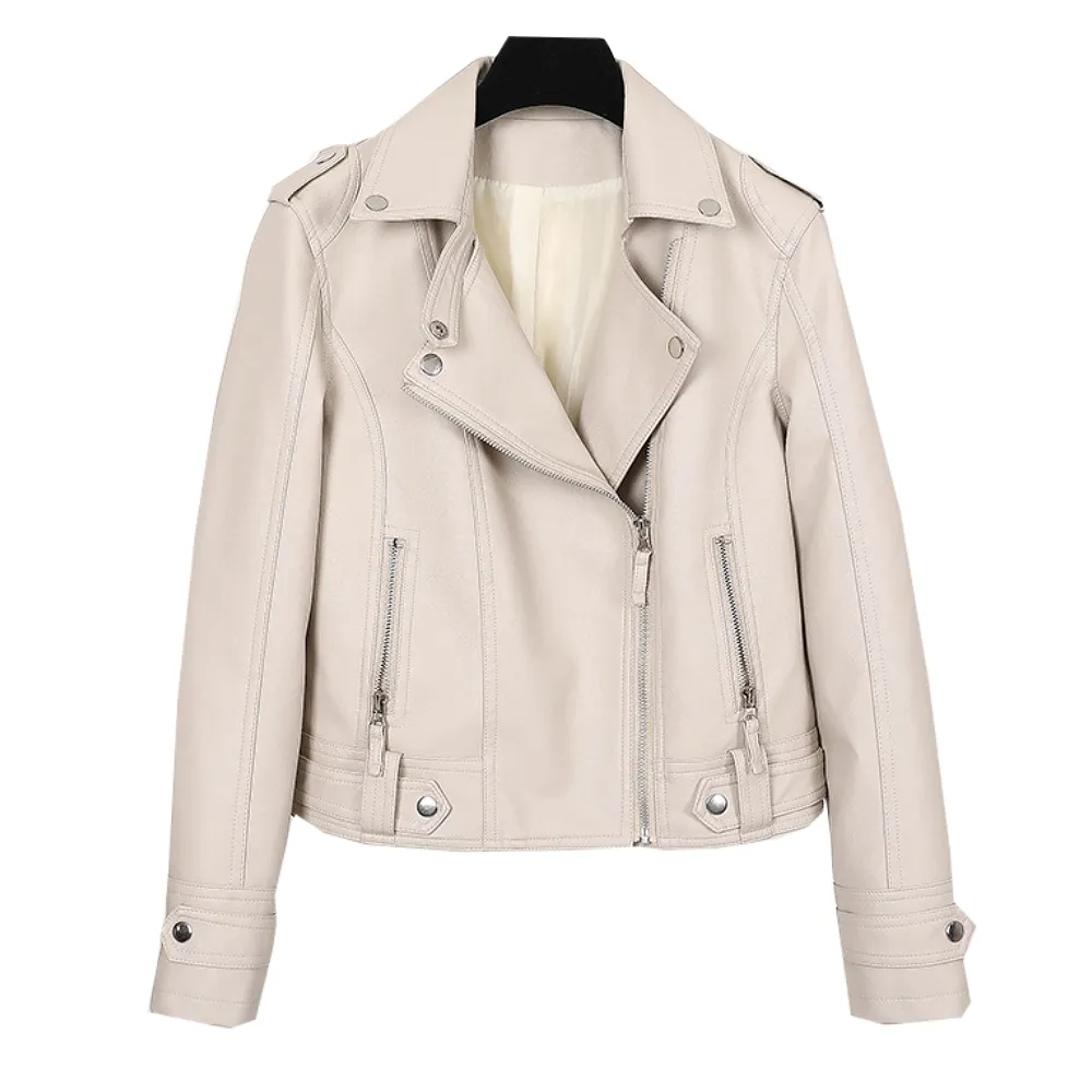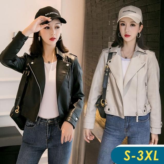 CHACO/預購/女春秋經典率性翻領短版皮衣夾克外套#py04(PU 皮衣 夾克 女外套 機車 米白 春秋)