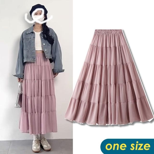 CHACO/現+預購/女夏高腰百褶層次蛋糕雪紡紗大擺長裙半身裙#6033(雪紡 百褶 蛋糕 長裙 半身裙 女 夏)