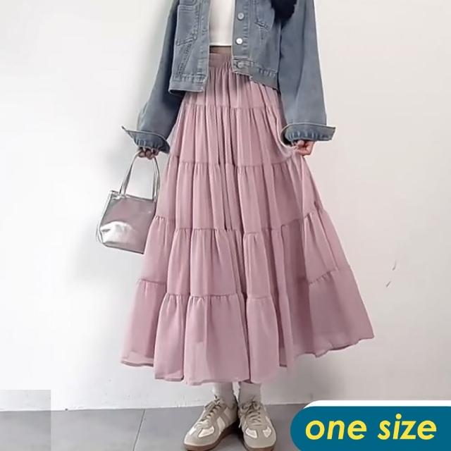 CHACO/現+預購/女夏高腰百褶層次蛋糕雪紡紗大擺長裙半身裙#6033(雪紡 百褶 蛋糕 長裙 半身裙 女 夏)