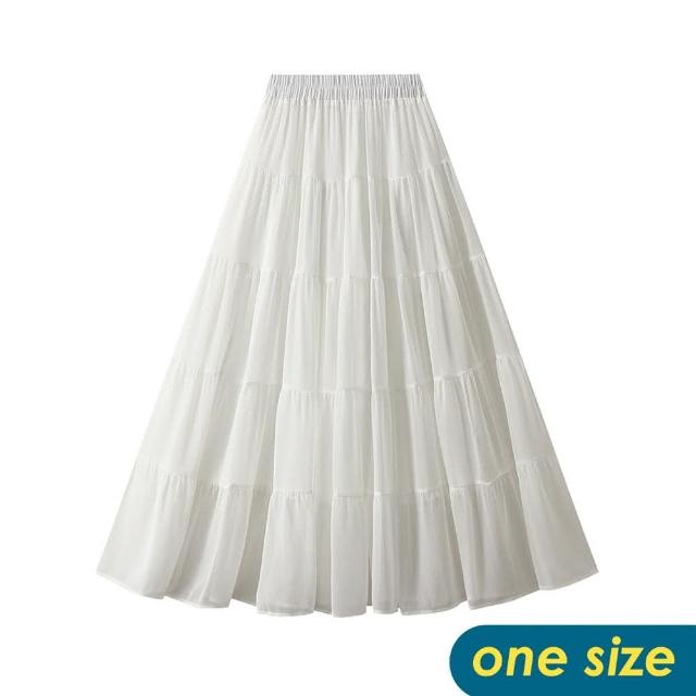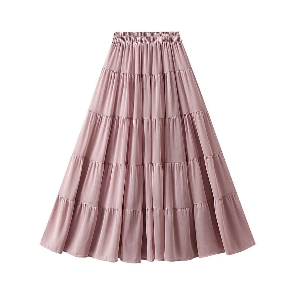 CHACO/現+預購/女夏高腰百褶層次蛋糕雪紡紗大擺長裙半身裙#6033(雪紡 百褶 蛋糕 長裙 半身裙 女 夏)