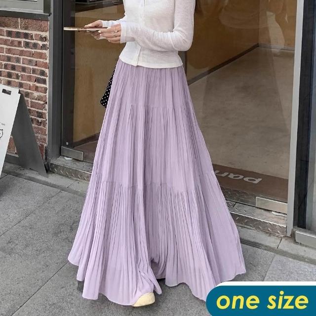 CHACO/現貨/ 女夏 超仙百褶雪紡半身裙 A字大裙襬垂感超長裙#9188 (紫色 雪紡 半身裙 長裙 女性)