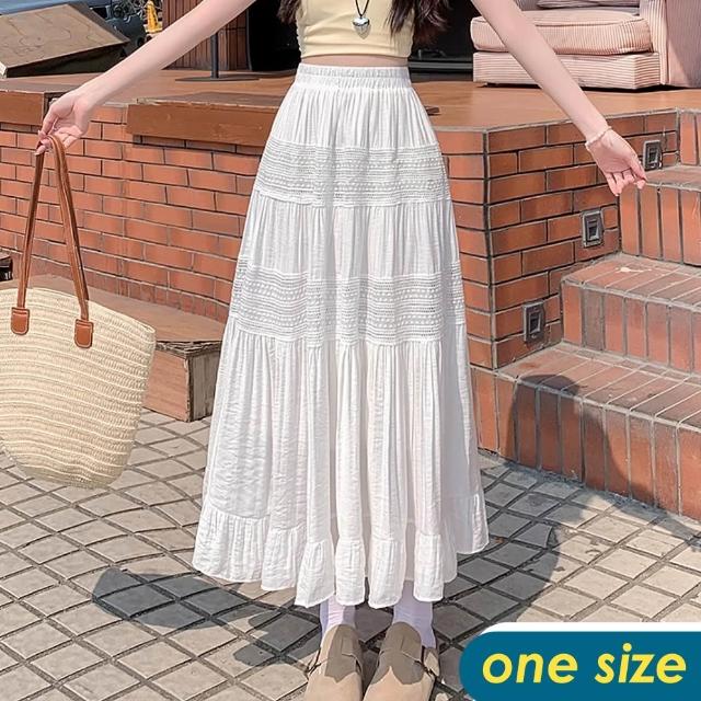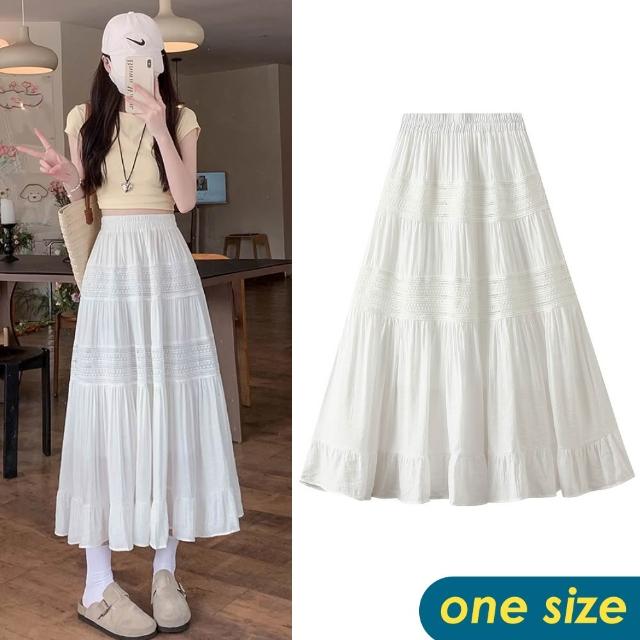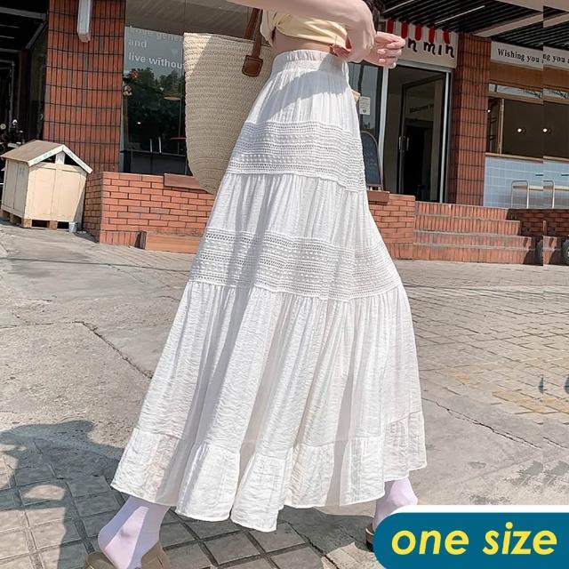 CHACO/預購/ 女夏 白色勾花蕾絲半身裙 A字裙襬高腰長裙#6531 (白色 半身裙 長裙 女性)