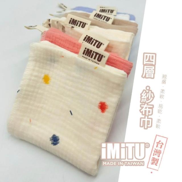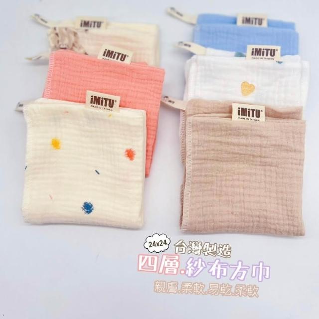 imitu 米圖台灣製 商檢合格紗布口水巾 純棉小方巾 手帕 口水巾 紗布巾 四層紗(單入 獨立包裝)