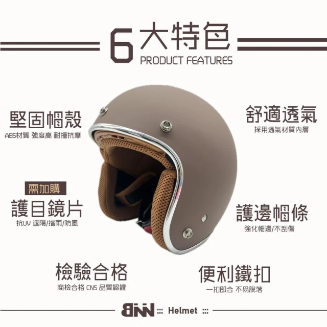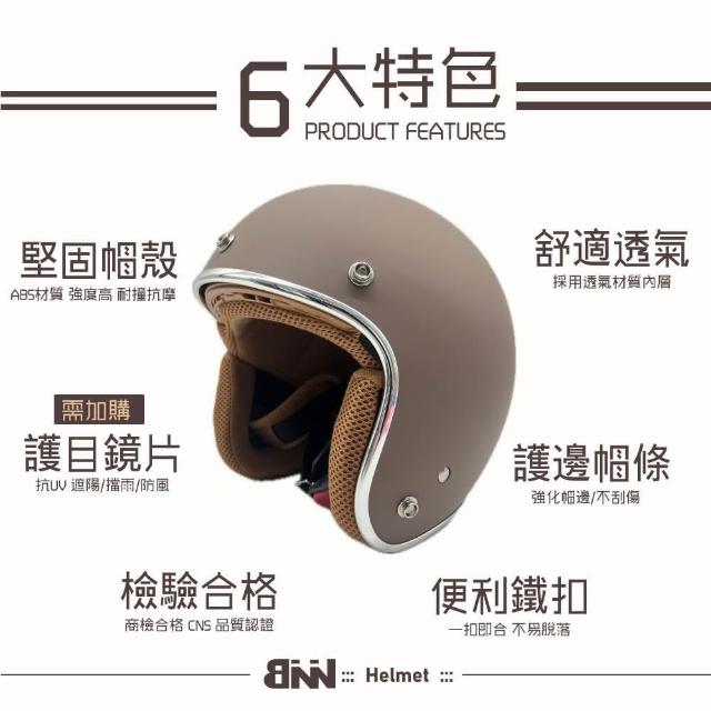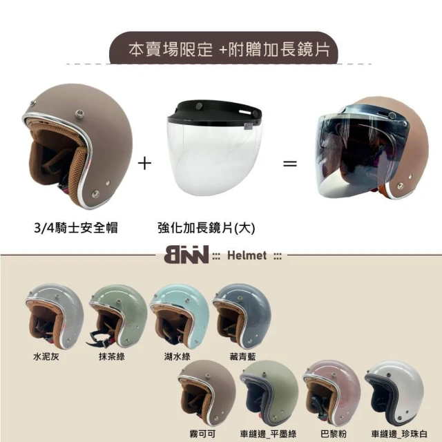 BNN 斌瀛BNN 3/4騎士安全帽 大人安全帽 銀邊/車縫邊 復古騎士帽 台灣製CNS檢驗合格+強化加長鏡片