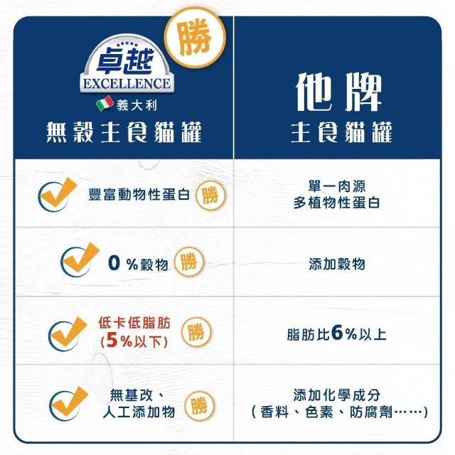 EXCELLENCE 卓越義大利 貓主食罐 無穀 貓罐/濕糧 全齡/幼母/成貓/結紮 85g