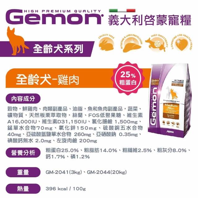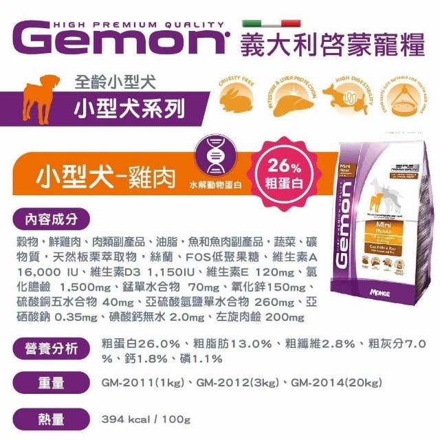 Gemon 啟蒙狗飼料 全齡犬/小型犬/幼母 雞肉/鮪魚/羊肉 3KG
