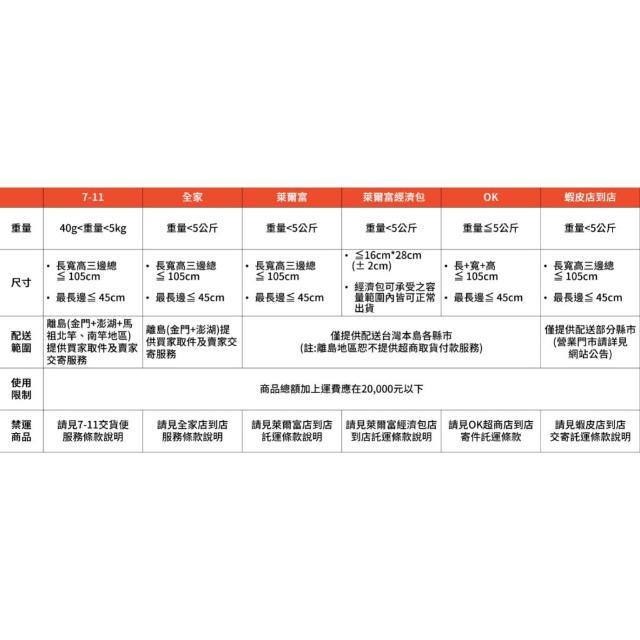 - 針對大型商品(包括:大型家電、家具床墊、健身按摩器材、車類...等),商店將於完成收款確認後,一天內〈不含例假日〉將會有專人與您確認相關配送細節等的聯繫。偏遠地區、樓層費及其它加價費用,皆由商店於約定配送時一併告知,商店將保留出貨與否的權利。
