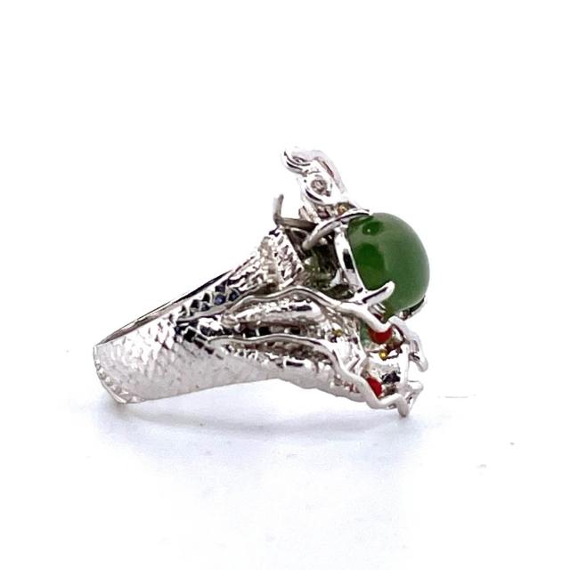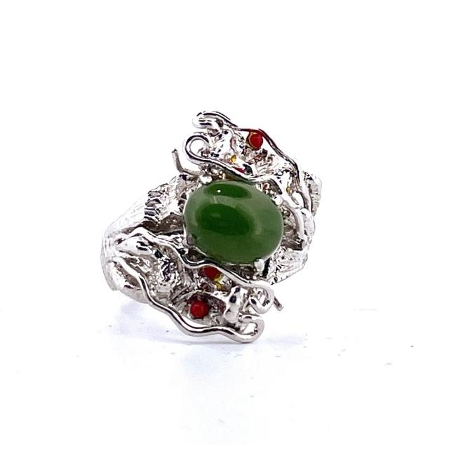 台灣碧玉戒指|雙龍搶珠造型|綠意盎然|祝福隨身|在地玉石|自然溫潤 豐田玉