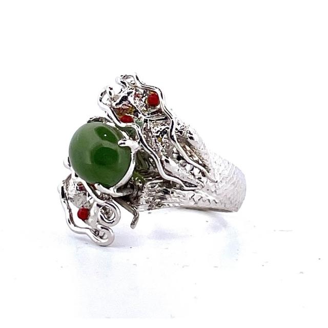 台灣碧玉戒指|雙龍搶珠造型|綠意盎然|祝福隨身|在地玉石|自然溫潤 豐田玉