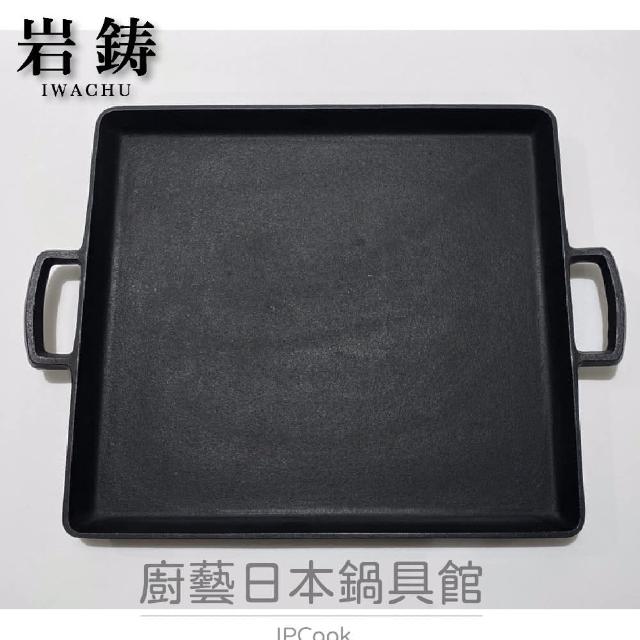 IWACHU 岩鑄鑄鐵方形平底烤盤|日本南部鐵器|雙耳(鐵板料理23013)