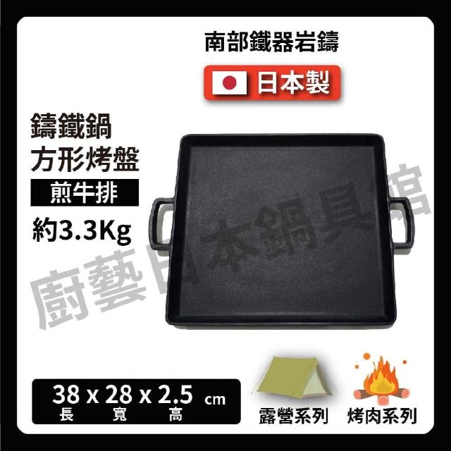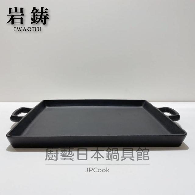IWACHU 岩鑄鑄鐵方形平底烤盤|日本南部鐵器|雙耳(鐵板料理23013)