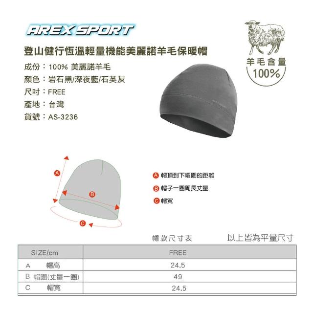 AREXSPORT羊毛帽 登山帽 登山羊毛帽 雪帽 雪地帽 運動帽 輕量羊毛帽 保暖帽 銀髮帽 吸濕抗臭 圓帽 除臭帽 台灣製(輕量羊毛抑菌除臭 抗寒吸濕排汗)