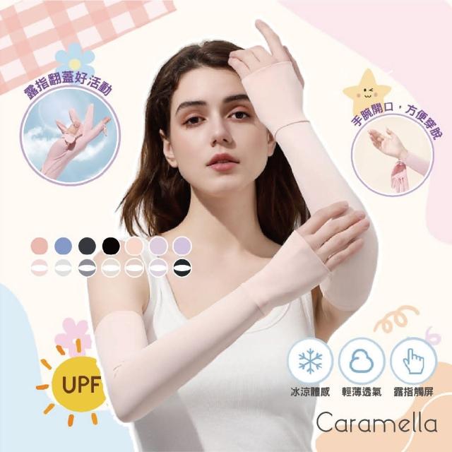 Caramella防曬 袖套 運動袖套 臂套 糖果色 涼感 涼感袖套 遮陽 手袖套 露指袖套 冰絲 降溫神器 冰袖