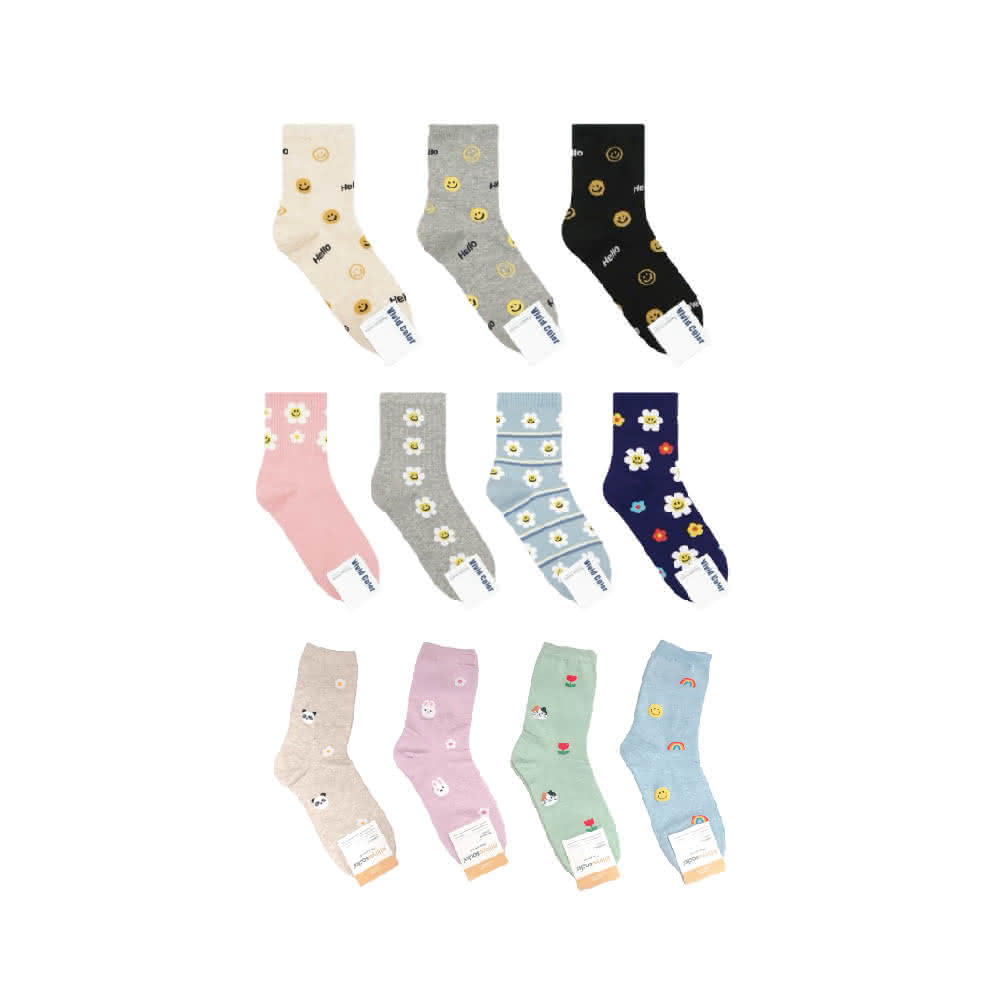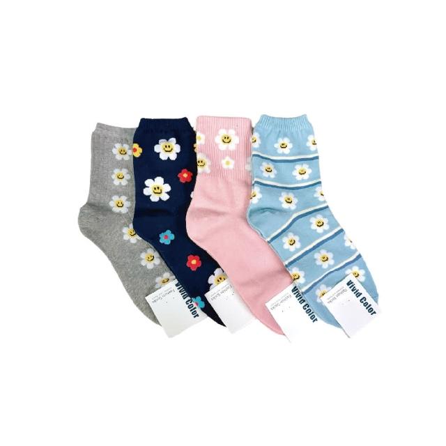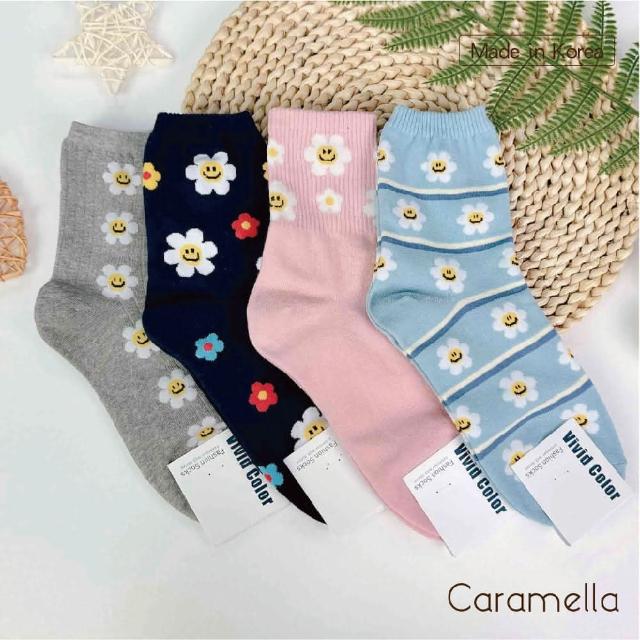 Caramella卡通襪子 中筒襪 微笑襪 韓國襪子 女生襪子 花朵襪子 襪子韓國 棉襪 中統襪 韓國襪 襪子