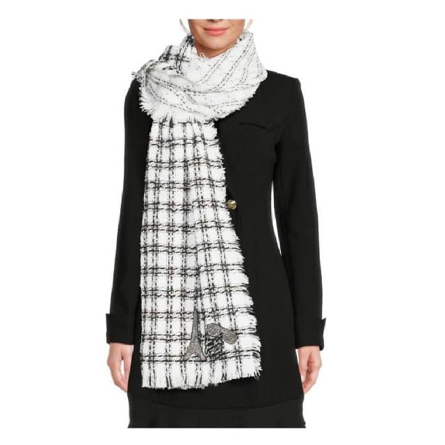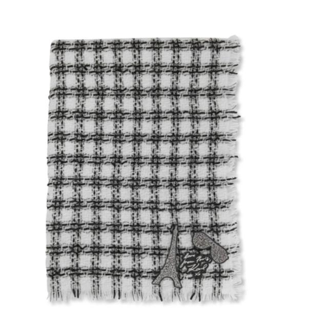 KARL LAGERFELD 卡爾Karl lagerfa 鐵塔格紋圍巾-白 披巾 小香風 好看又保暖
