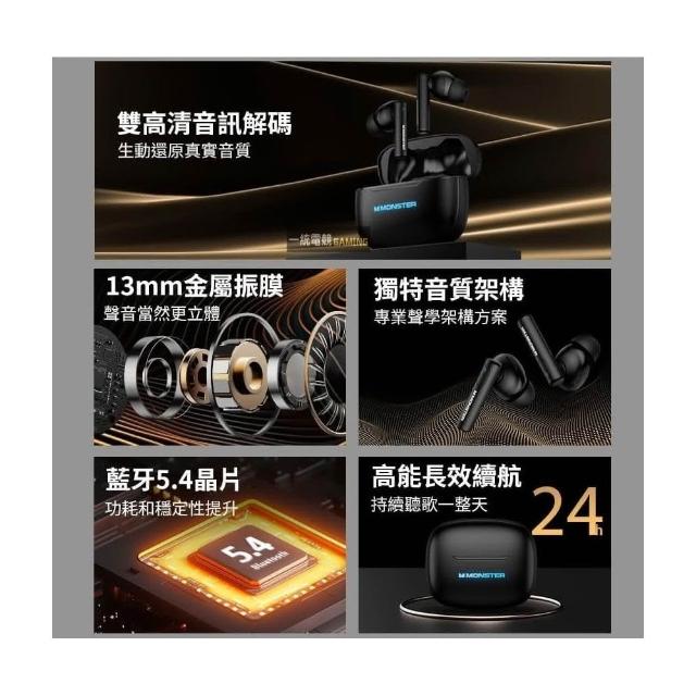 MONSTER 魔聲MON-XKT26 主動式降噪低延遲藍牙耳機 藍牙5.4 ANC主動降噪 13mm動圈