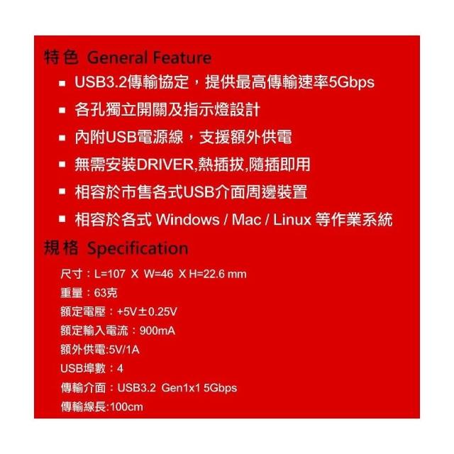 INTOPIC廣鼎 HB-610 USB3.2高速集線器 隨插即用 電腦HUB HB610