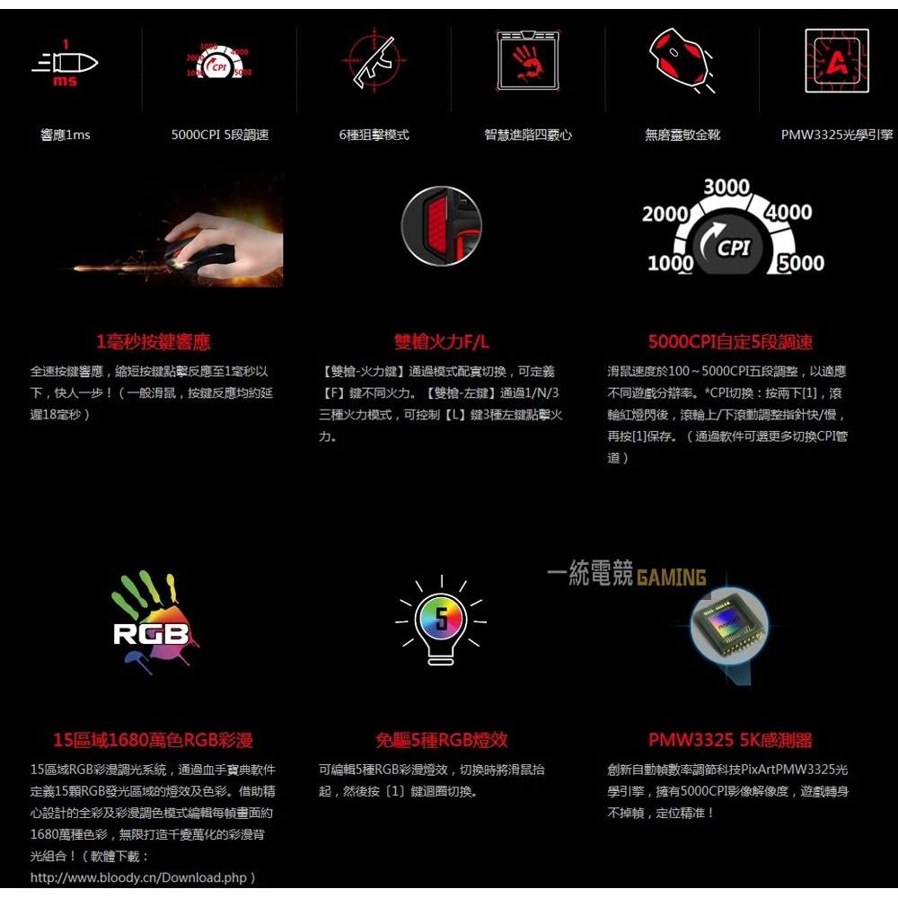 A4 Bloody 雙飛燕血手幽靈 J95 九五智尊 RGB 有線電競滑鼠 J95s