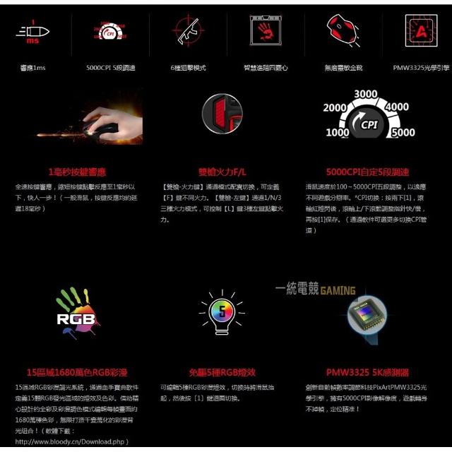 A4 Bloody 雙飛燕血手幽靈 J95 九五智尊 RGB 有線電競滑鼠 J95s