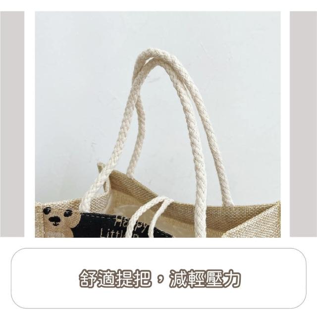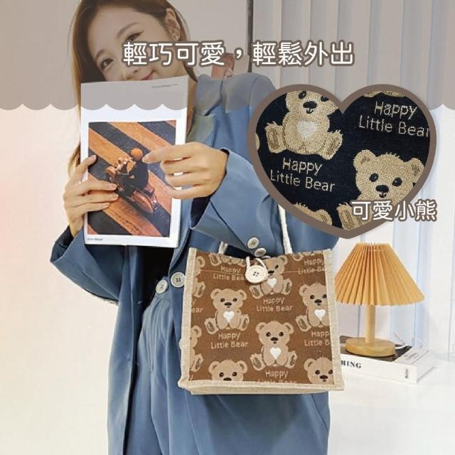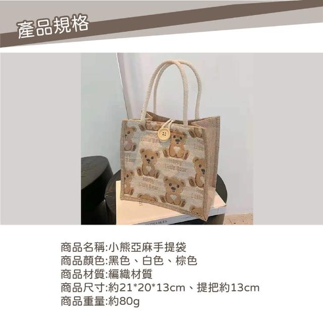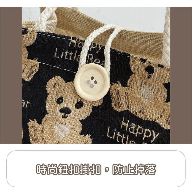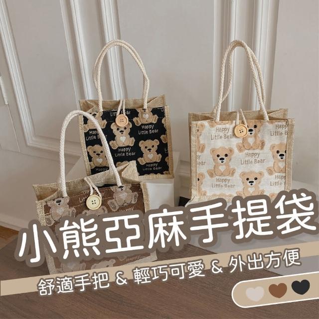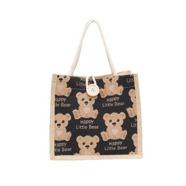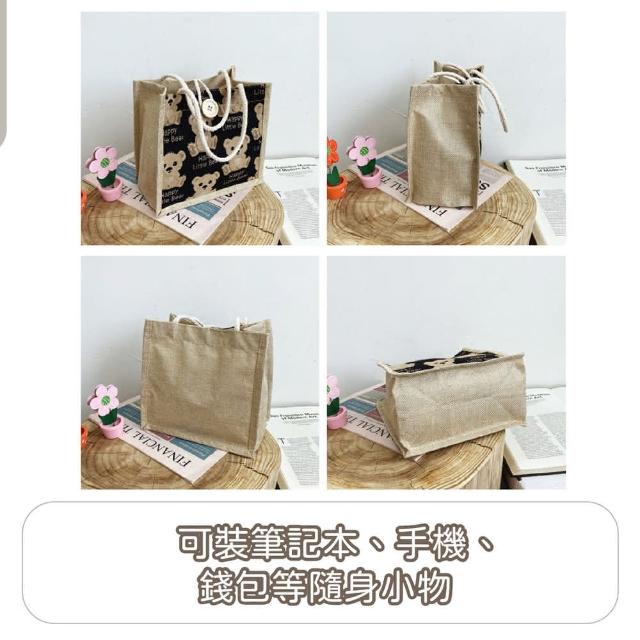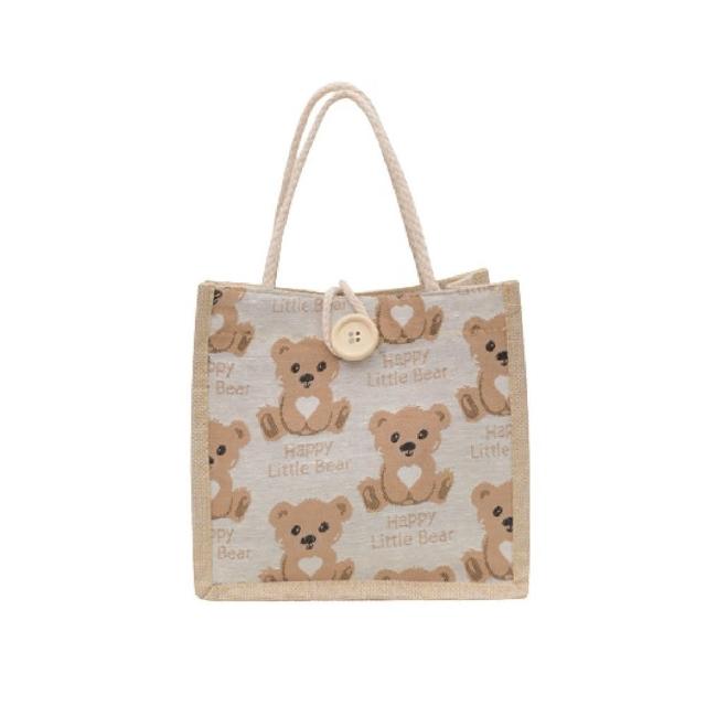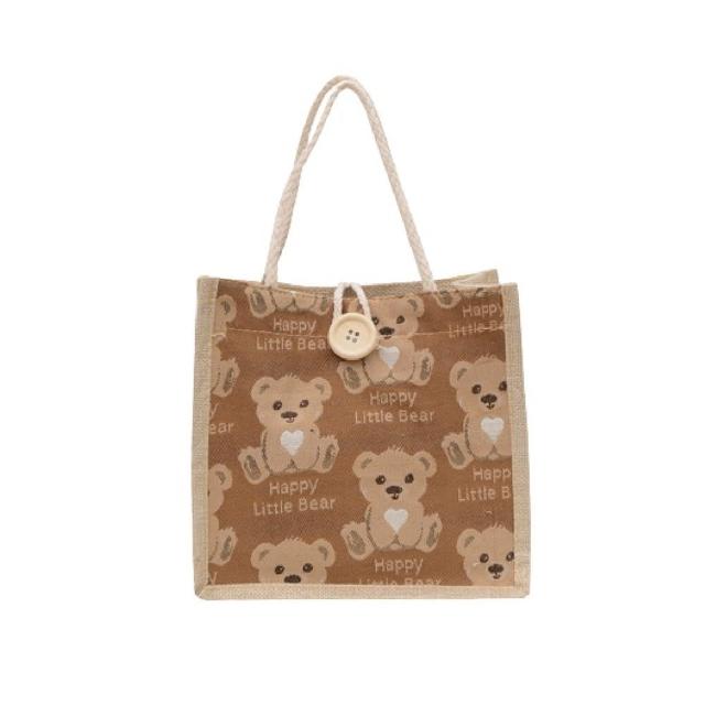 Wing小熊亞麻手提袋亞麻提袋 手提袋 小熊提袋 可愛提袋